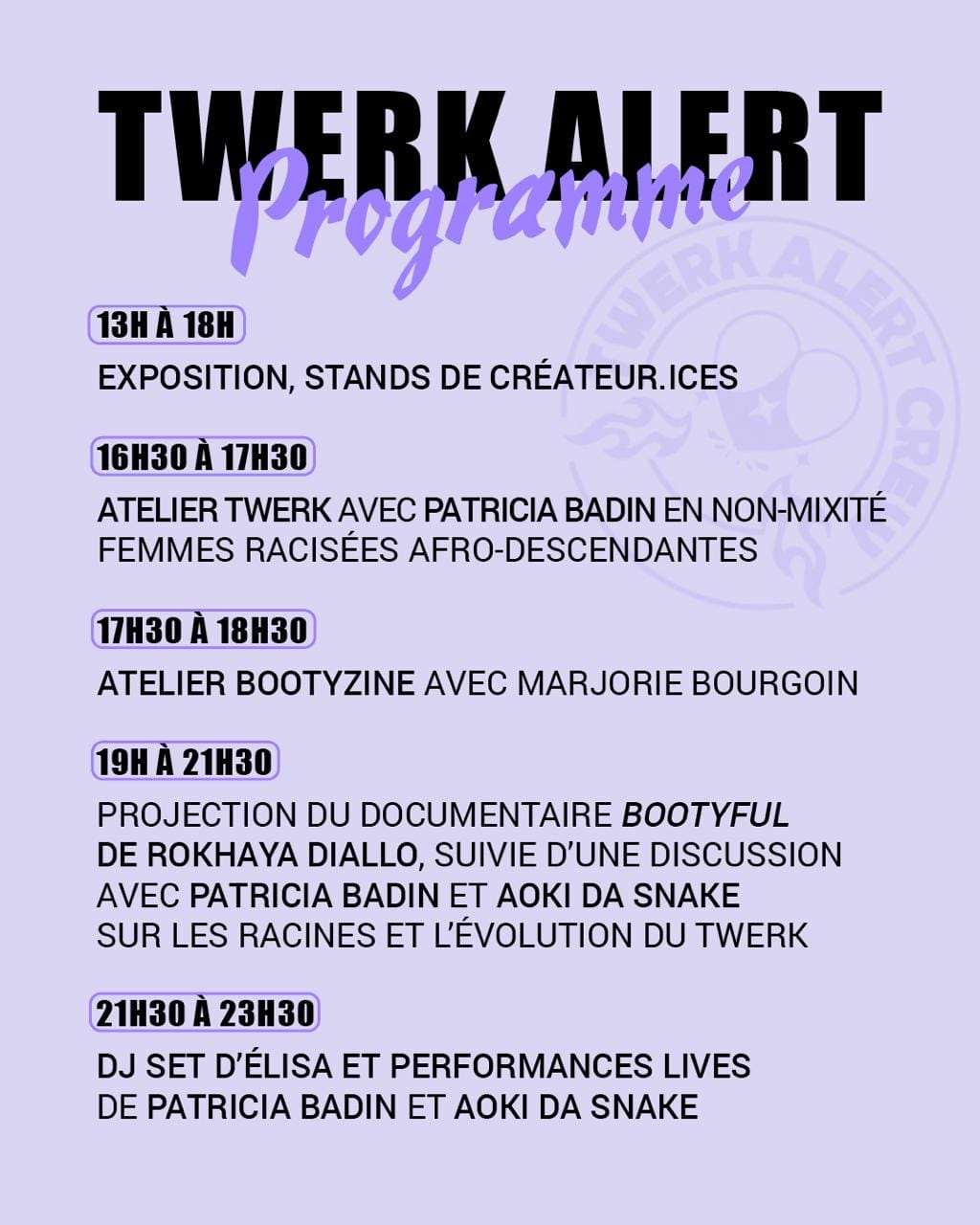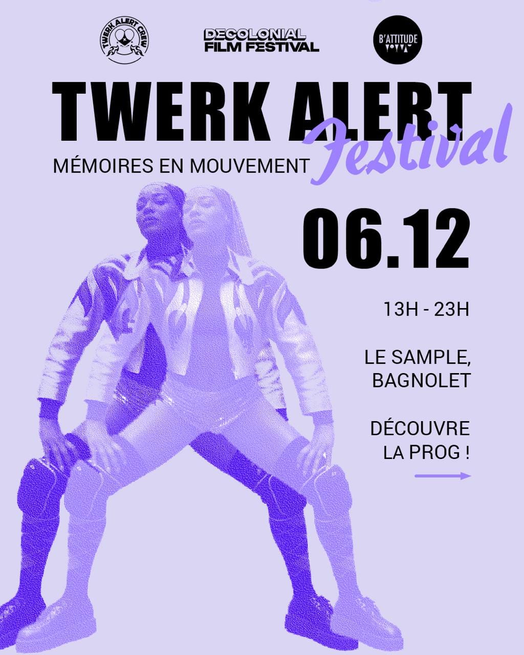 Le twerk, danse issue des diasporas africaines, devient ici un moyen de re-mémoire, rejoignant les aspirations du Decolonial Film Festival à créer des espaces de transmission pour diffuser des récits, gestes et visuels longtemps marginalisés. À travers le croisement de différentes expressions artistiques (film, performance, texte, musique), TWERK ALERT souhaite ouvrir un espace de réflexion collectif pour tisser des mémoires plurielles.
