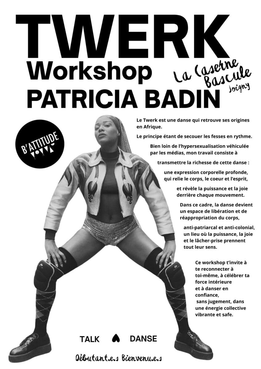 Viens participer au Workshop Twerk “Secoue ton Booty”, une expérience unique pour découvrir le Twerk comme danse d’expression corporelle, mouvement et énergie. Cette journée t’invite à reconnecter corps et esprit, à bouger tes hanches et ton bassin en rythme, dans un espace safe et bienveillant, loin des clichés hypersexualisés.